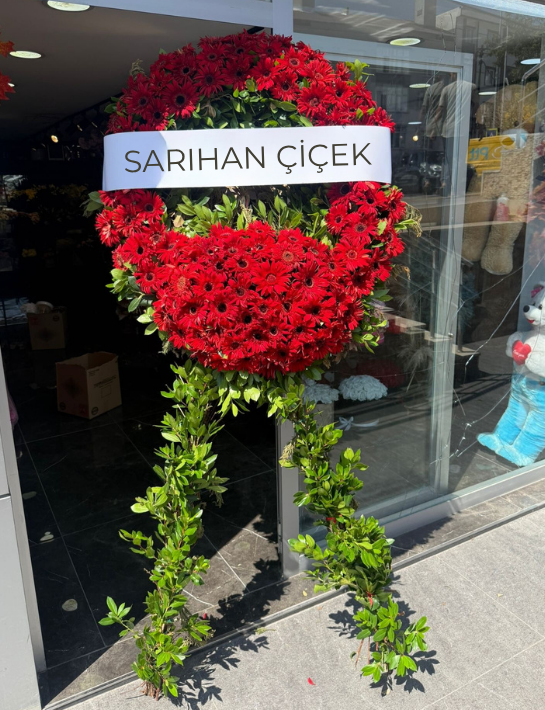 Taze ve sade çiçeklerle oluşturulan tasarım, kurum ya da birey adına hazırlanabilir. Üzerine isim ya da taziye mesajı eklenir ve belirlenen saat aralığında tören alanına teslim edilir.